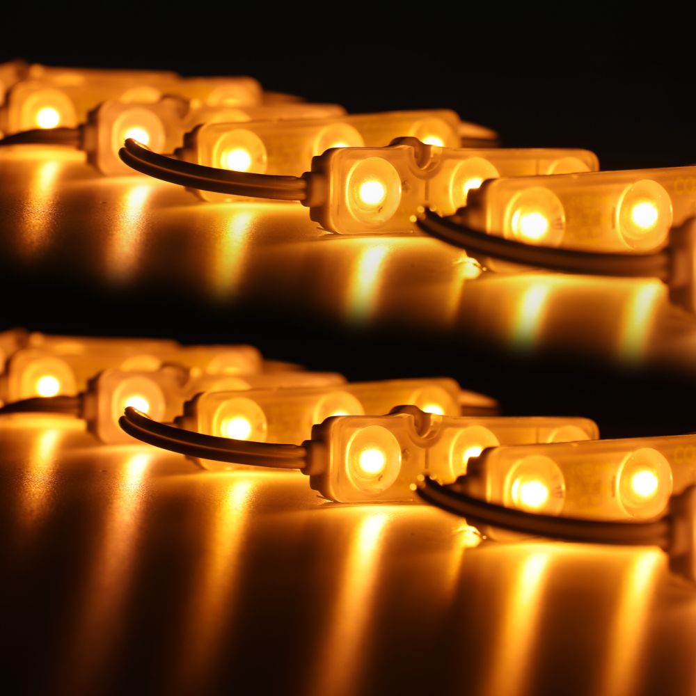 Yellow 2835 3-LED Module with 160° Lens for Letter Sign Billboard Backlight – 5×10 Pack