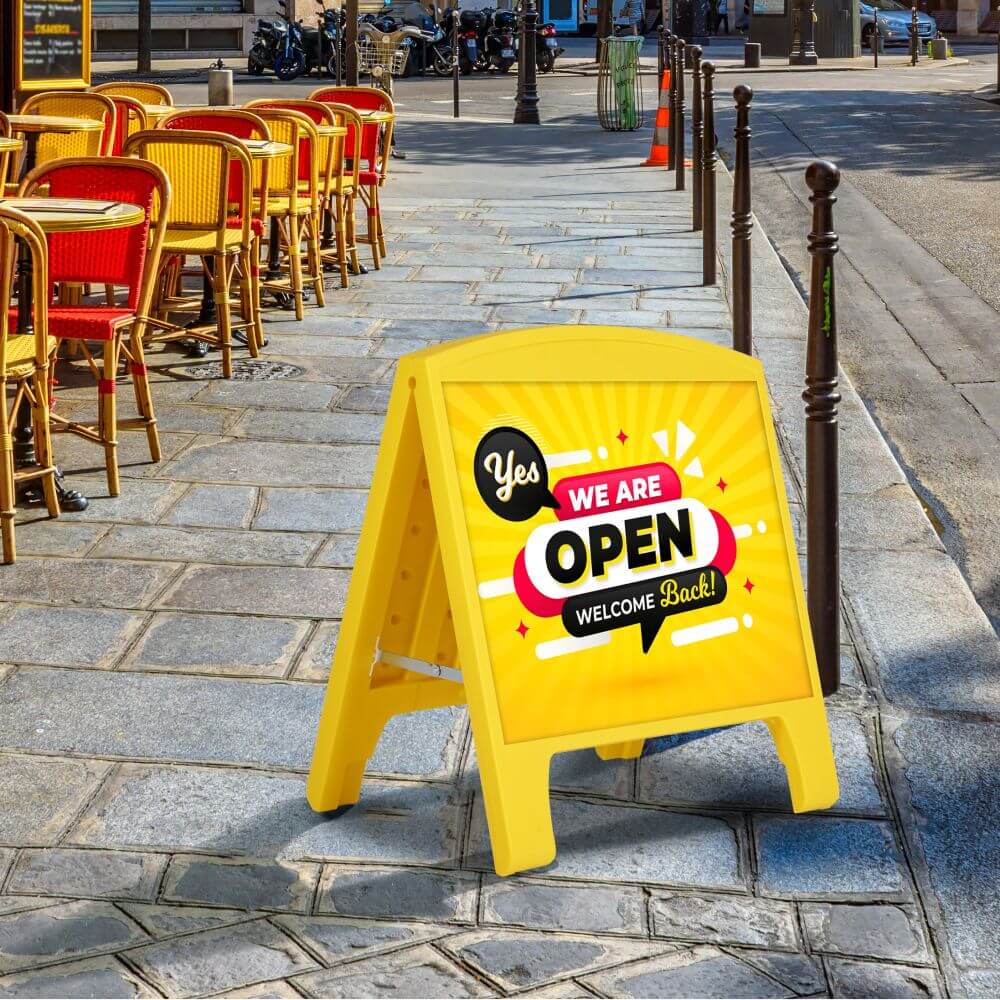 Yellow Double-Sided A-Frame Sandwich Board Sidewalk Sign Holder – 24.80×19.76 Inches Outdoor Display